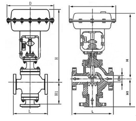 氣動三通調(diào)節(jié)閥采用圓筒型薄壁窗口形閥芯導向,不同于柱塞形閥芯的襯套導向。配用多彈簧執(zhí)行機構(gòu),具有結(jié)構(gòu)簡單、重量輕、體積小、拆裝方便等優(yōu)點。廣泛應用于精確控制氣體、液體等介質(zhì)的工藝參加如壓力、流量、溫度、液位保持在給定值。適合于把一種流體通過三通閥分成二路流出或理把兩種流體經(jīng)三通閥合并成一種流體的場合。