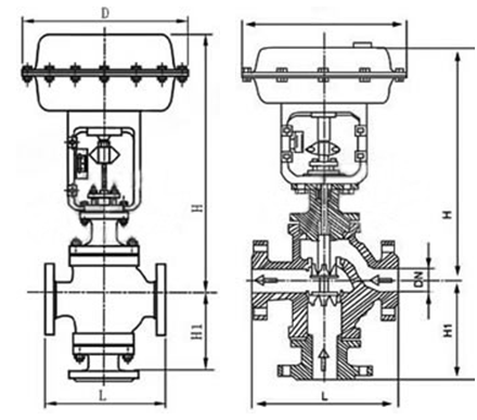 ZMAQ(X)氣動三通調節閥有合流和分流兩種結構形式。閥芯結構采用圓筒薄壁窗口,并采用閥芯側面導向,三通閥在某些場合可以替代兩個氣動單座調節閥和一個三通接管而等到廣泛應用常用于熱交換器的兩相調節,也可用于簡單的配比調節。公稱通徑和壓差較小時,合流閥可用于分流場合,可互換使用,但公稱通徑大于80mm和壓。差較大的分流場合,不能互換使用。